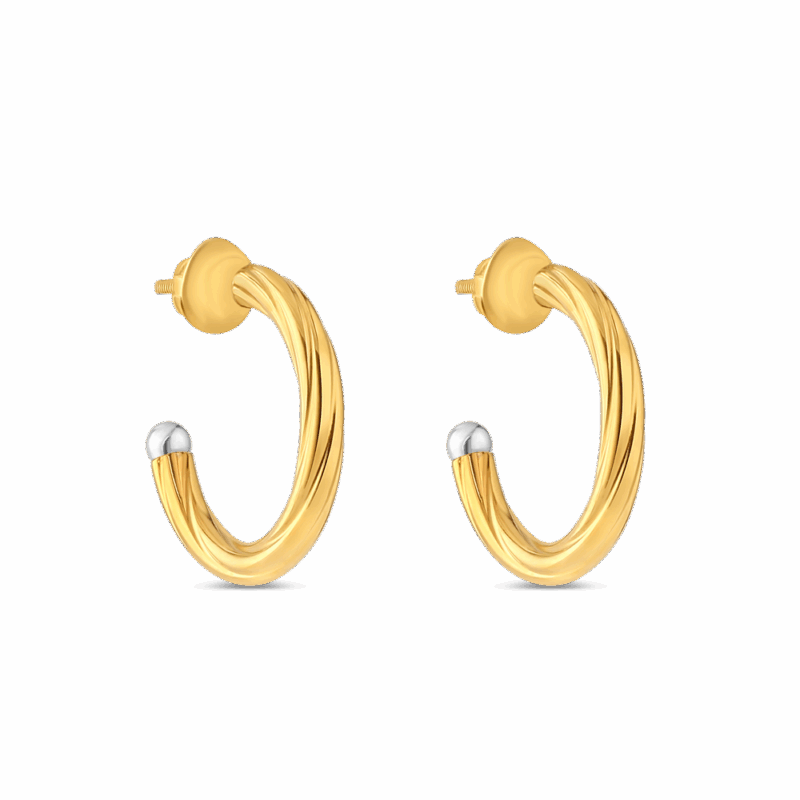 يتميز هذا القرط ذو الطوق الذهبي عيار 22 قيراطًا بتصميم ملتوٍ ناعم يلتقط الضوء ويعكسه بشكل جميل. تضفي الأطراف الرقيقة ذات الرؤوس الروديوم تبايناً عصرياً يضفي لمسة عصرية على الطوق الكلاسيكي بلمسة راقية بلونين.