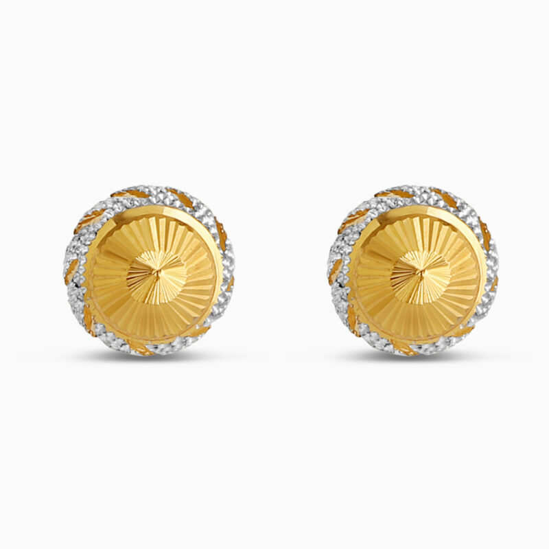 ارتقي بإطلالتك اليومية مع أقراط مرصعة بالألماس ثنائية اللون بقطع الألماس, مزيج متطور من الحرفية والأناقة العصرية. مصنوعة يدوياً بخبرة في ذهب عيار 22 قيراط, ، يُظهر كل قرط قرط مشعًا نقش على شكل ألماسي منقوش بالألماس في الوسط، مصممة لالتقاط الضوء وعكسه مع كل حركة.