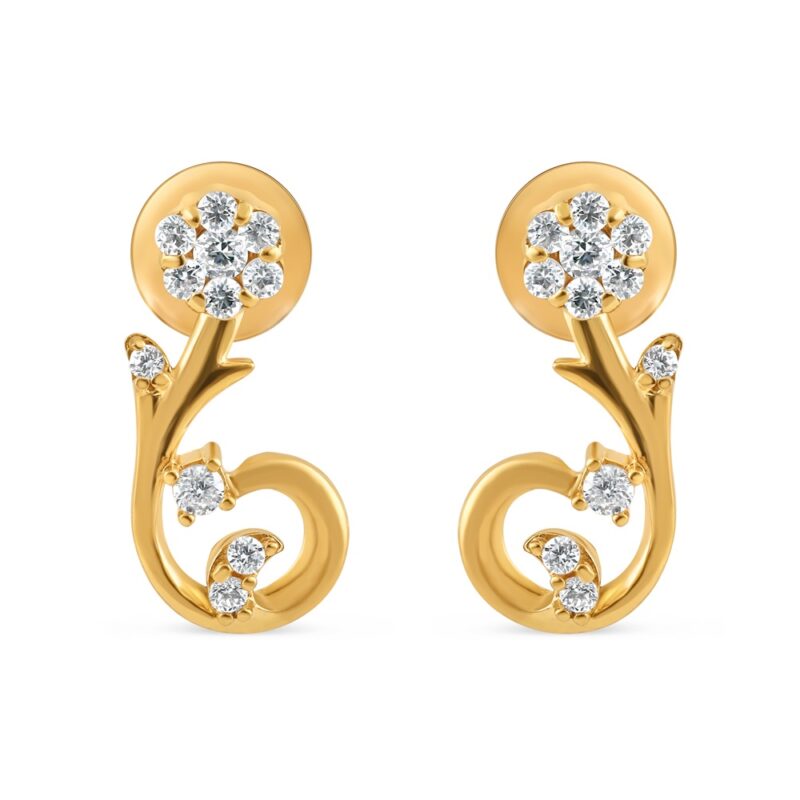 صُمم قرطا الأذنين على شكل دوامة زهرية حول زهرة رقيقة تتدفق في شكل منحني رشيق في الأسفل. وتشكل مجموعة من أحجار الزهرة CZ مركز الزهرة، بينما تضيف الدوامة الذهبية الكاسحة حركة ونعومة إلى الشكل. توازن التركيبة بين الهيكل والانسيابية، مما يخلق تصميماً مميزاً يشعرك بالتعبير والرقة في آن واحد.