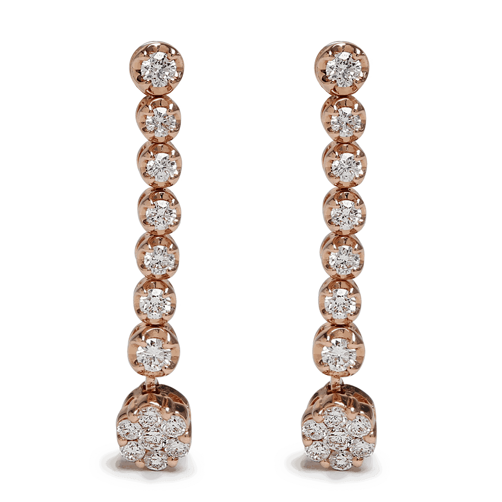 أقراط متدلية من الألماس من الذهب الوردي عيار 18 قيراطاً