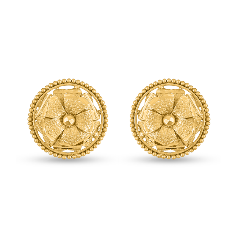 تزيّن بالجمال الخالد لـ 22 قيراط وردة صن رايز الذهبية القرط حلقان الأزرار، زوج رائع مصمم ليأسر بأناقته وسحره. صُنعت هذه الأزرار من الذهب الفاخر عيار 22 قيراط، وتتميز هذه الأزرار مقاس 15 ملم بنمط وردة معقدة، تجسد المزيج المثالي بين التقاليد والرقي العصري.