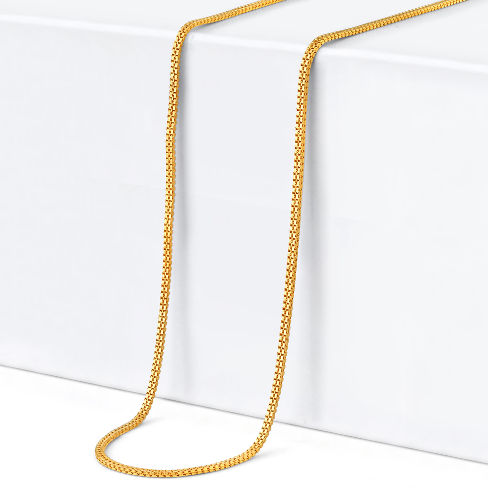 يتميز بعرض 1.2 مم وطول 17.5 بوصة مما يجعله مثاليًا للارتداء اليومي أو كقاعدة للتعليقات والقلائد. يُظهر نمطه المتشابك المدمج براعة الحرفية الراقية ويضمن القوة دون التضحية بالراحة.
