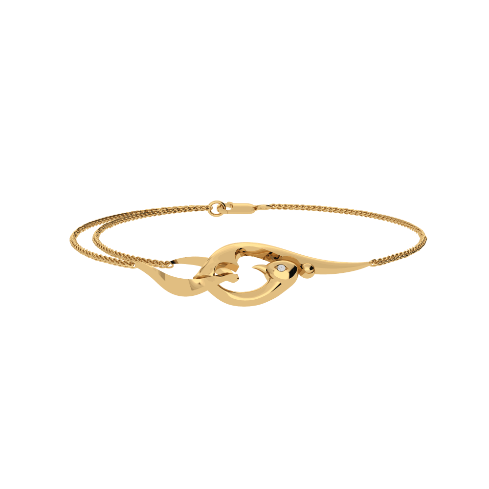 الوقت يجلب اللطف والحكمة - وأنتِ أجمل ما كنتِ عليه في أي وقت مضى. تحتفي فينياسا بكِ في كل العصور، مع أيقونة الفخر والبهجة هذه - الطاووس الجميل. في هذا السوار يسرق الأضواء، مع تلك العين المتلألئة من الألماس. منحوتة من الذهب (الأبيض أو الأصفر أو الوردي)، إنها قطعة مبهجة ورائعة ورائعة.