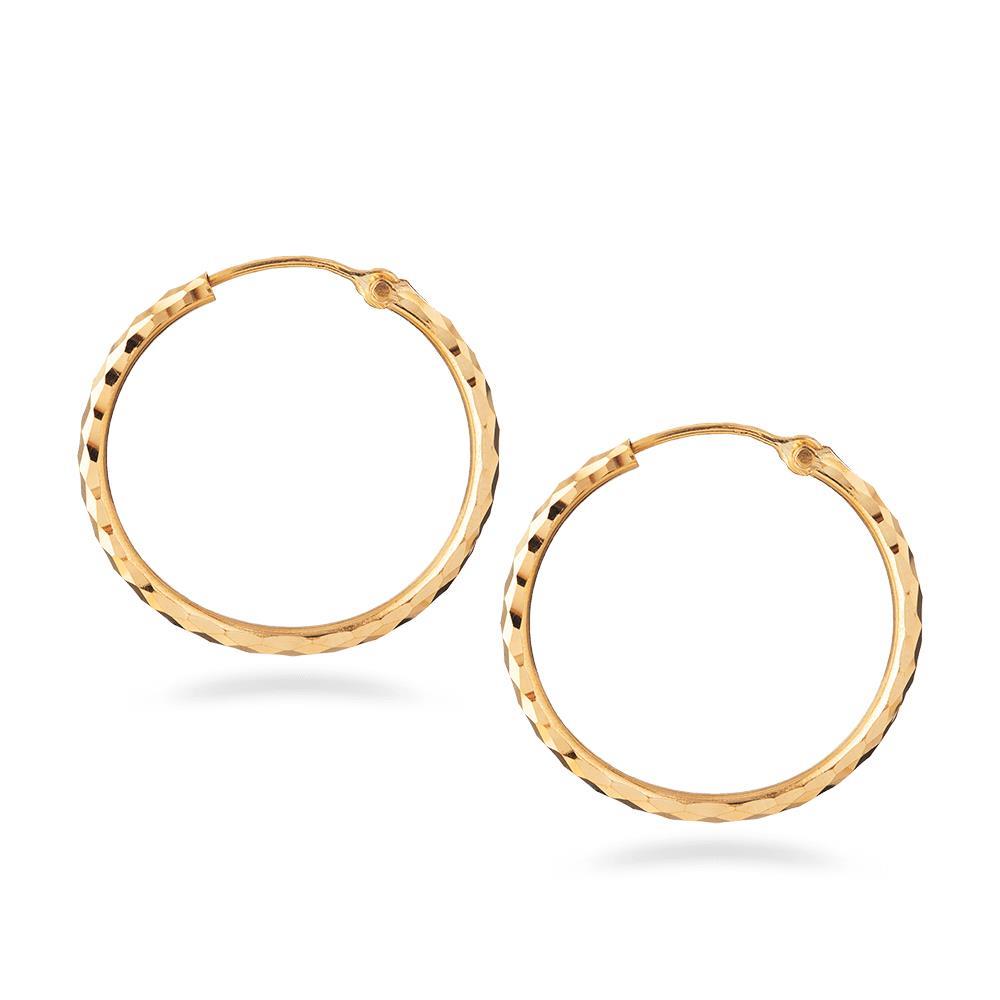 تتميز هذه الأقراط الدائرية بشكل دائري كلاسيكي مزين بتفاصيل مقطوعة بالألماس على طول السطح. يخلق النمط ذو الأوجه تلاعبًا حيويًا بالضوء، مما يضيف تألقًا خفيًا إلى الشكل الخالد. كما أن أبعادها المتوازنة تجعلها معبرة وسهلة الارتداء.