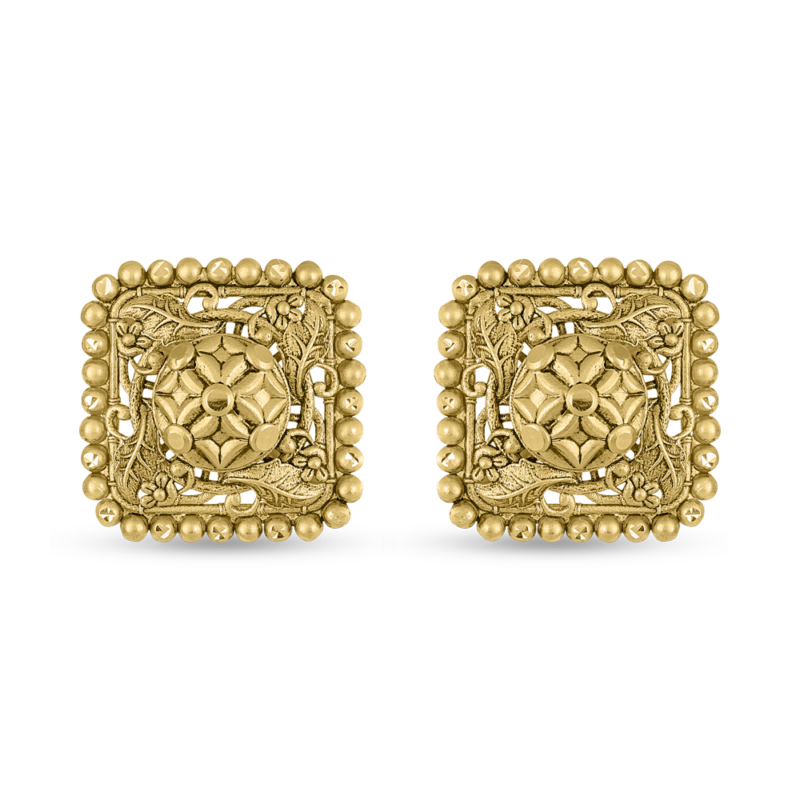 صُنع في تصميم فاخر 22 قيراط تتميز هذه الأقراط المصنوعة من الذهب بخفة وزنها ومتانتها، وهي مصممة لارتدائها طوال اليوم دون عناء. صُمم الشكل المربع بدقة متناهية وتم تشطيبه بلمسة نهائية عتيقة تبرز البراعة الفنية والحرفية التي تميز أعمال PureJewels الذهبية. يحمل كل زوج من هذه الأقراط علامة مميزة لضمان الأصالة ويصل في علبة تقديم مميزة.