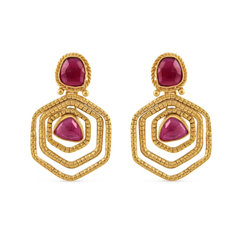 قرط متدلي بتصميم سداسي الشكل من الذهب عيار 22 قيراط
