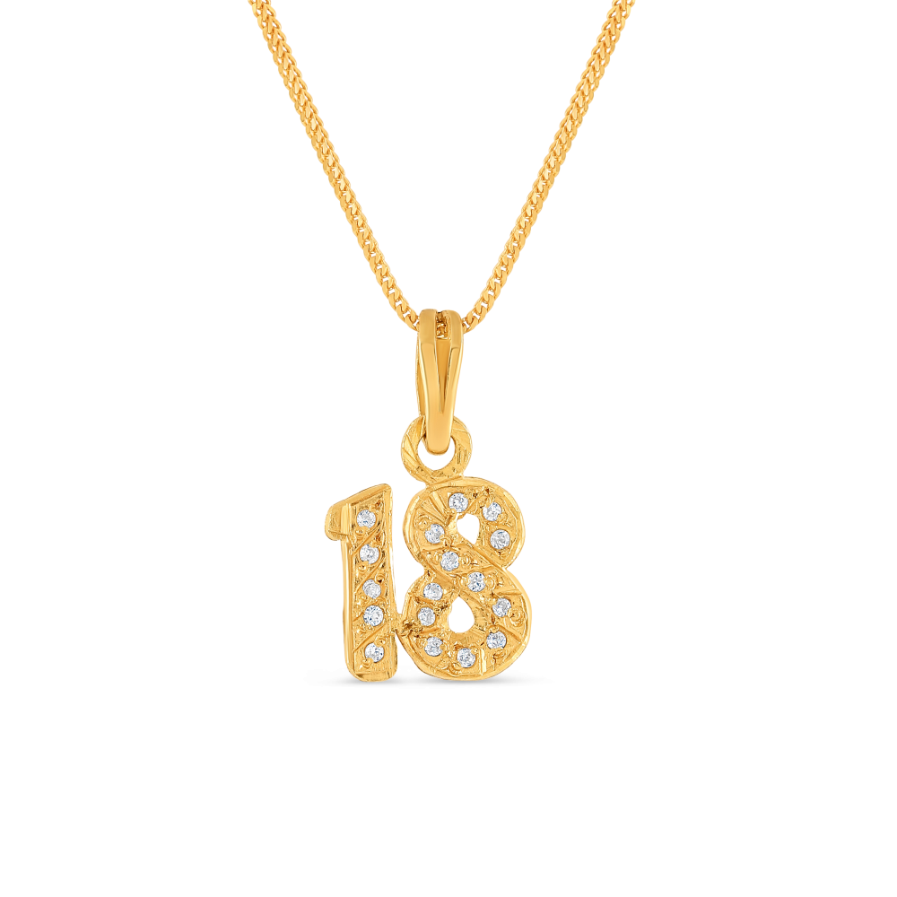 قلادة رقم 18 من الذهب عيار 22 قيراط مع حجر CZ