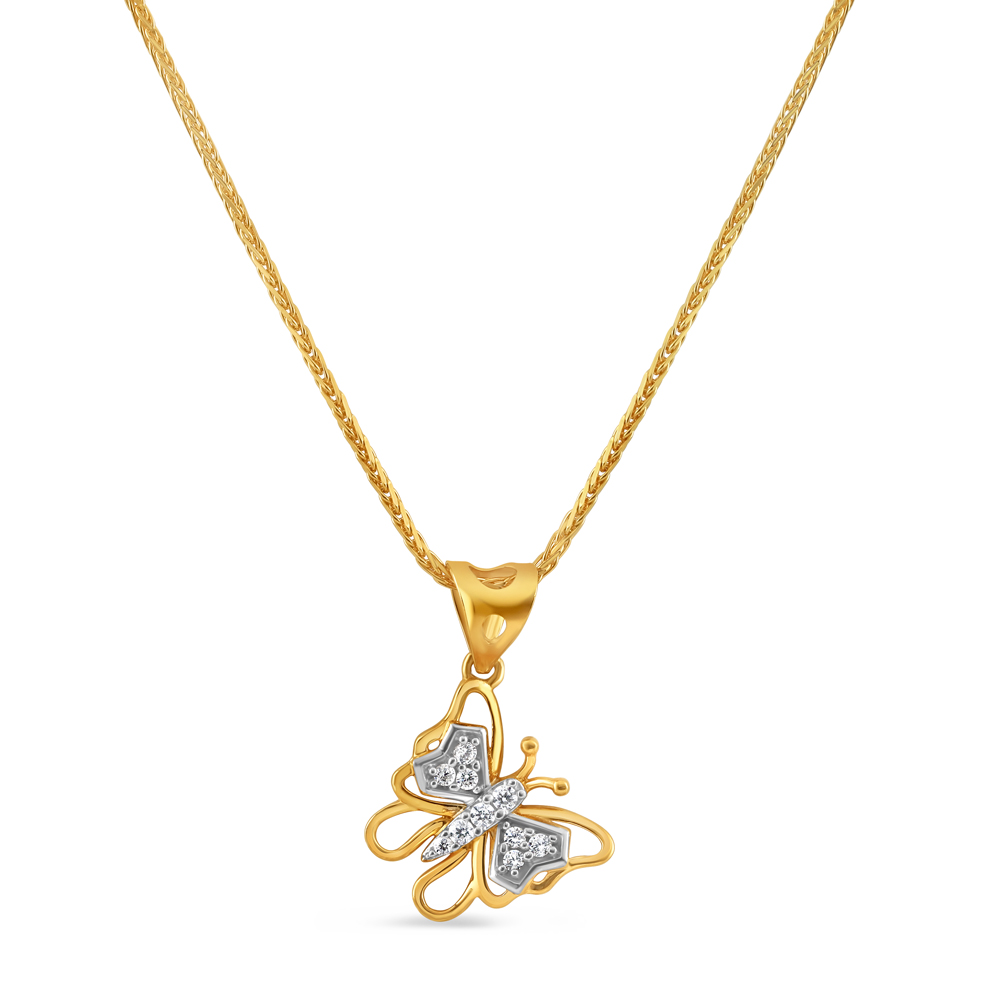 اجعلي لحظاتك الخاصة أكثر تميزاً مع هذه القلادة بتصميم فراشة من الذهب عيار 22 قيراط! قلادة CZ هي الإكسسوار المثالي لتزيين عنقك وإضفاء لمسة من الأناقة على أي زي.