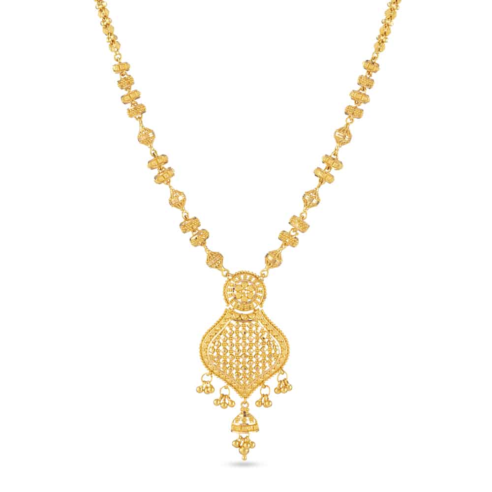لا شيء أفضل من الحقيقي. هذا المثير 22 قيراط قلادة ذهبية القلادة جزء من مجموعة جالي الحصرية لدينا، وهي مزينة بـ زخرفة ذهبية على الطراز الهندي الأصيل.