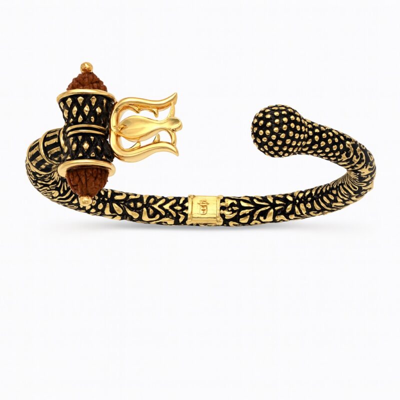 يرمز الكادا إلى اللورد شيفا، حيث يرمز التريشول إلى القوة والحماية والتحول. وتوحي عناصر الرودراكشا المزدوجة بالصفاء والاتصال الإلهي. وتزيد الأنماط المزخرفة واللمسات النهائية المؤكسدة من العمق البصري، وتمزج بين الرمزية الروحية والتصميم الملكي.