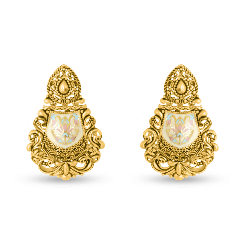 التعقيدات تفاصيل المينا (المينا) تتميز بألوانها النابضة بالحياة وحرفتها الدقيقة التي تعكس البراعة الفنية الخالدة للحرفيين المهرة. صُممت هذه الأقراط للمناسبات الخاصة والرفاهية اليومية على حد سواء، وتتميز بتصميم خفيف الوزن ولكنه يلفت الأنظار ويضمن الراحة دون المساومة على الأناقة.