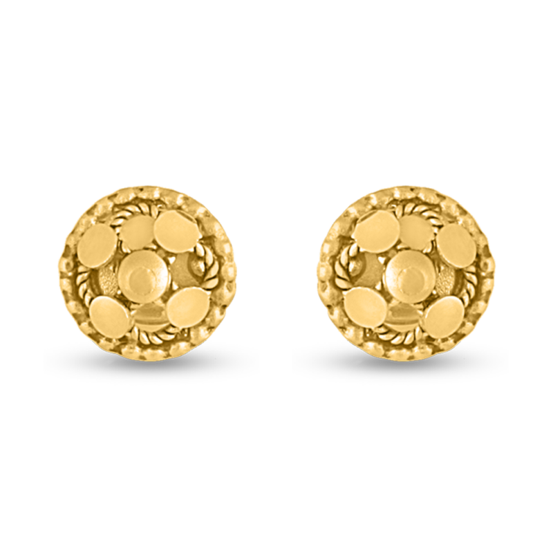 اكتشف روعة 22 قيراط الذهب أزرار أرماري, تتميز بـ تشطيب عتيق وبقياس 4 مم فقط. صُنعت هذه الأقراط الرائعة باستخدام النقش و الإزميل اليدوي تقنيات، إلى جانب الأسلاك الدقيقة، مما يضمن أن تكون كل قطعة فريدة من نوعها ومليئة بالطابع المميز.