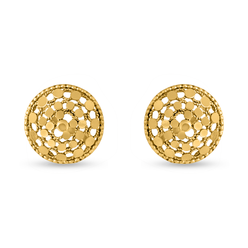 Wir stellen vor: unser atemberaubendes 22ct Armari-Nieten aus Gold, wunderschön verarbeitet mit einem antikes Finish. Mit einer Größe von 10 mm präsentieren diese Ohrringe komplizierte Prägung und Handziselierungstechniken, die jedes Stück zu einem Unikat machen. Ihr elegantes Design macht sie perfekt für den Alltag und verleiht jedem Outfit einen Hauch von Raffinesse.