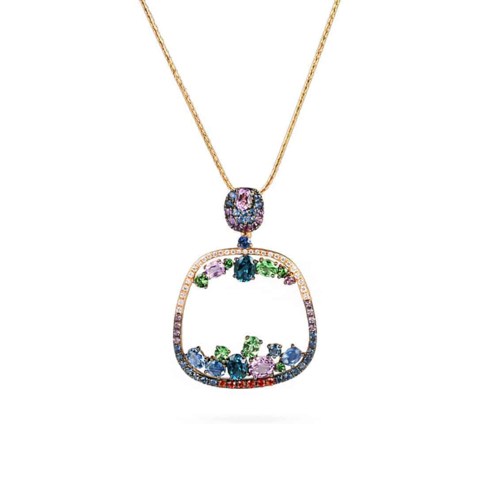• 18ct Gold-Anhänger Mit Diamanten und Amethyst, grüner Granat, heller Saphir & London Blue Topas Steine