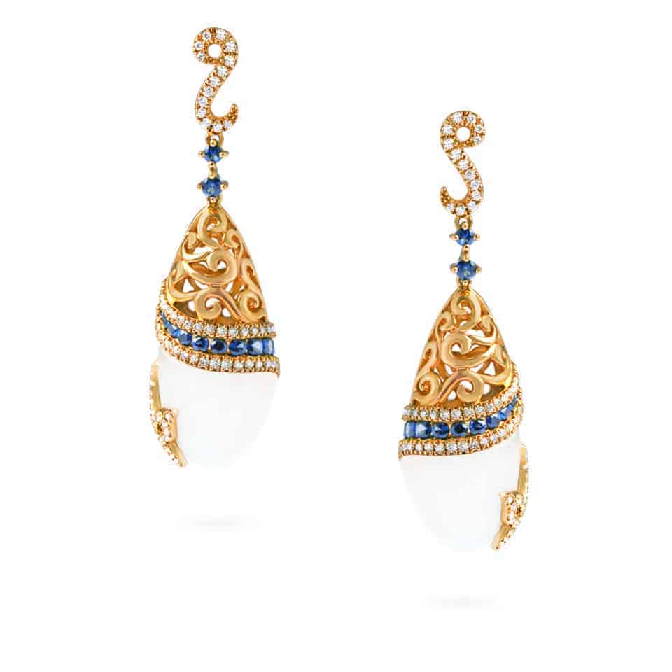 - 0,46ct Diamanten - 13,17ct weißer Mondstein & heller Saphir Steine - 9,9g