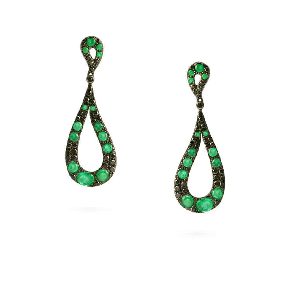 - Ohrringe mit schwarzem Diamanten und Smaragd