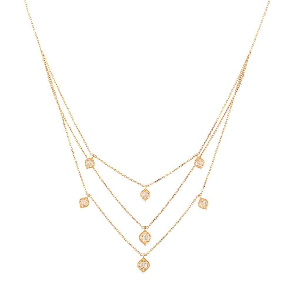 18 Karat Roségold-Halskette mit drei Strängen und Diamanten