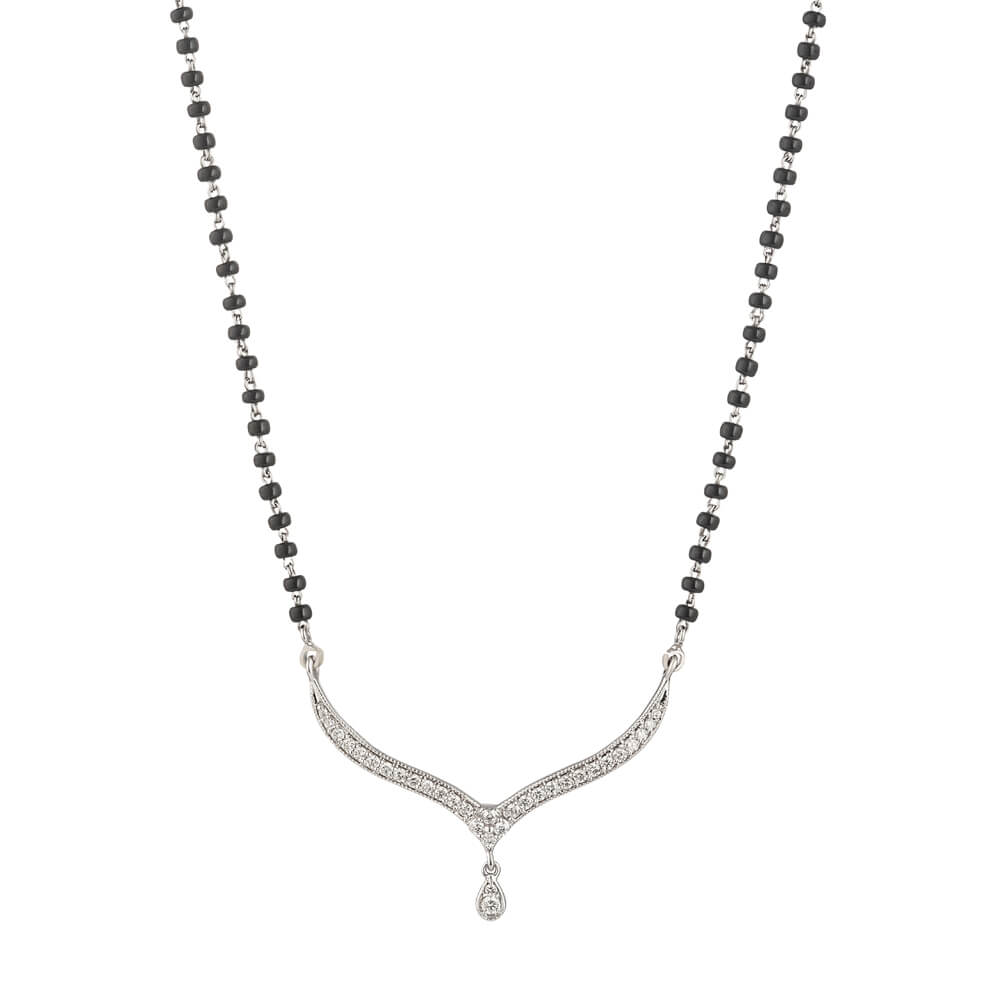 Unser Weißgold Diamant-Mangalsutra ist eine Anspielung auf das traditionelle indische Erbe mit einer modernen Note. Purejewels' Weißgold mangalsutra ist zart und steht für das reine Band der Ehe.