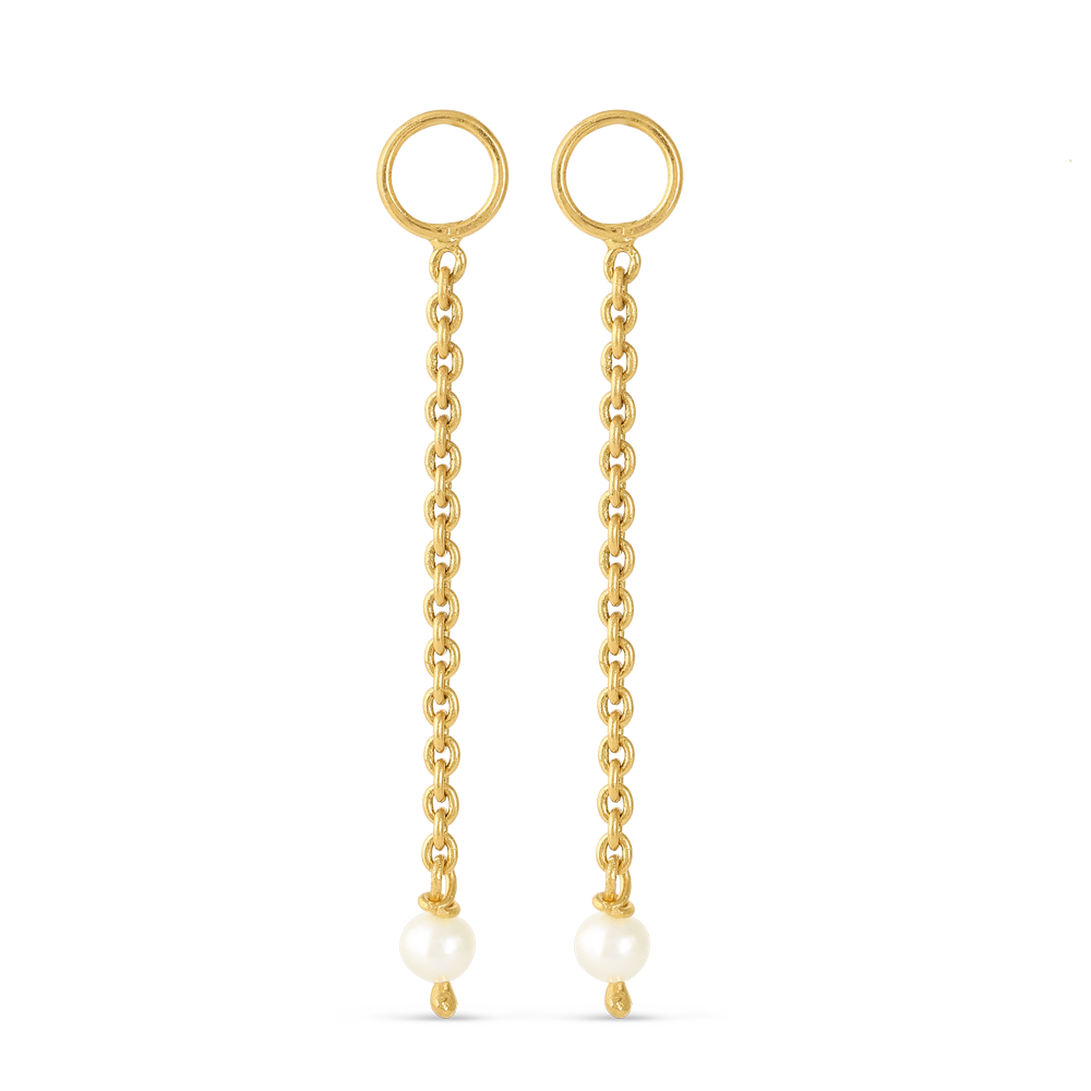 Wir präsentieren unseren exquisiten Ohrhänger mit Perle aus 22-karätigem Gold, ein atemberaubendes Schmuckstück, das Eleganz und Raffinesse ausstrahlt. Dieser wunderschöne Ohrhänger verfügt über eine glänzende 3mm Perle, die an einer zarten Goldkette hängt und einen zeitlosen und klassischen Look kreiert. Mit einer Länge von 1,75 Zoll sind diese Ohrhänger das perfekte Accessoire, um jedes Outfit aufzuwerten.