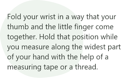 Um Ihren Handgelenksumfang zu ermitteln, benötigen Sie lediglich ein Maßband oder einen einfachen Faden sowie ein Lineal. Wenn Sie die oben genannten Dinge dabei haben, falten Sie Ihr Handgelenk so, dass Ihr Daumen und der kleine Finger zusammenkommen. Halten Sie diese Position, während Sie mit Hilfe eines Maßbandes oder eines Fadens die breiteste Stelle Ihrer Hand abmessen. Wenn Sie ein Maßband verwenden, haben Sie die Zahlen vor sich, die Sie anhand der Tabelle weiter unten auswerten können. Wenn Sie stattdessen einen Faden verwenden, legen Sie ihn einfach an das Lineal, um die genaue Länge zu ermitteln, und werten Sie ihn anhand der Tabelle weiter vorne aus. Die oben genannten Schritte helfen Ihnen also, Ihre Armreifgröße zu ermitteln.