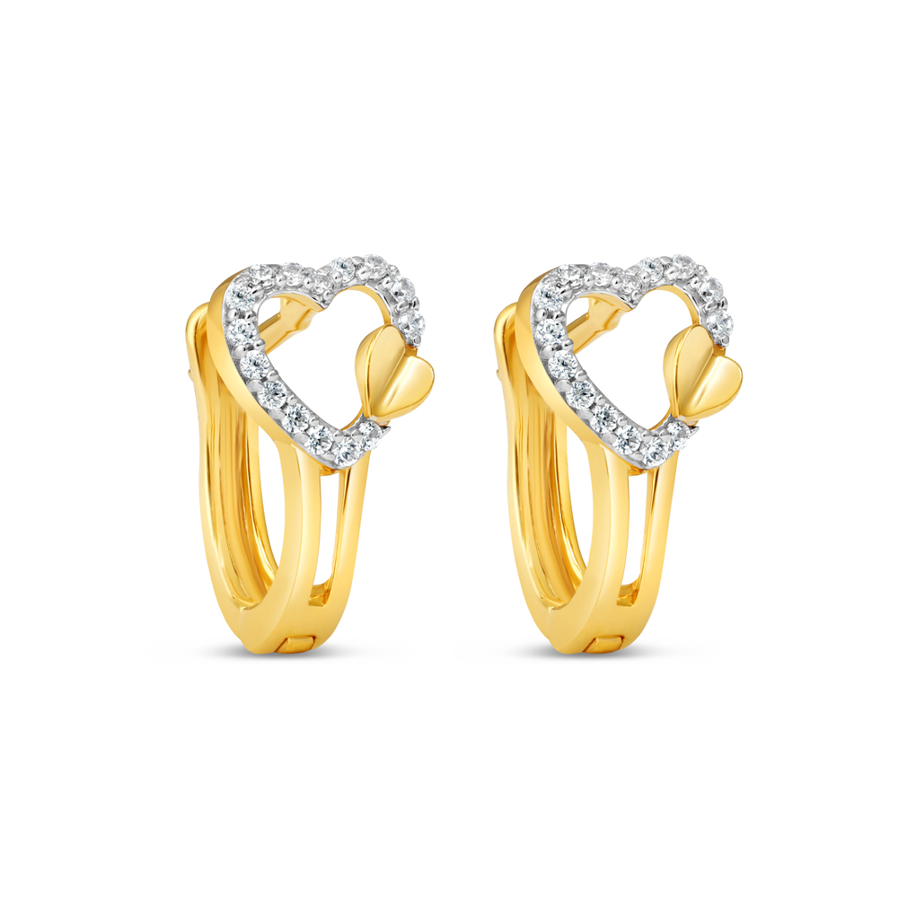This 22k Gold Bali has been designed with an idea to give it a minimal look and feel. These gold balis have been handcrafted by our karigars in India from the very beginning. The design has been carved out of pure 22K gold while the heart has been studded with crystal zircons that look brilliant and have a shine that is nothing less than real diamonds. This bali by Purejewels has a minimal yet a fun touch to its design.