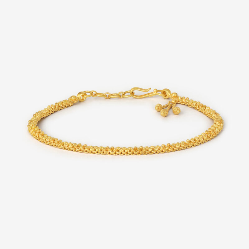 Crafted in a comfortable 7.5-inch length, the bracelet is adorned with delicate gold ball drops—reminiscent of ghungroos—adding grace and subtle movement with every gesture. A secure S-hook clasp ensures ease of wear and peace of mind.