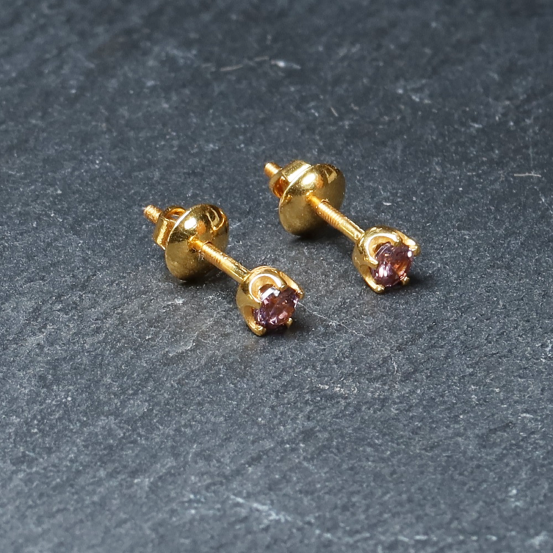 22ct Gold Round Light Pink CZ Earrings