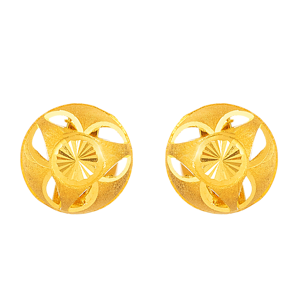 Crafted from premium 22-carat gold, these earrings are shaped with detailed artistry, showcasing precision-cut motifs and a radiant matte-polish finish. The cut-outs allow for breathability while adding an architectural aesthetic.