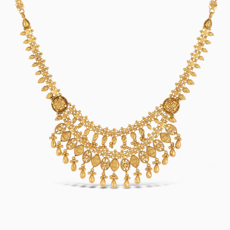 Perfect for bridal trousseaux, festive wear, and cultural celebrations, this necklace pairs beautifully with sarees, lehengas, or contemporary gowns. Style it as a hero piece for weddings, or layer it with a choker for a grander look. Complement it with matching drop earrings or gold bangles from the Armari Collection to complete your ensemble with grace and harmony.