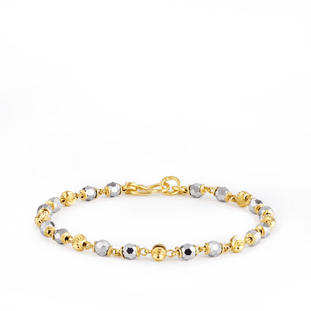 The hand-faceted black beads and carved gold small spheres are sewed together with the utmost care and attention, making it feel effortless. We’ve also finished the bracelet with an S-shaped lock so you don’t have to go through the effort of passing it through the baby’s wrist.
