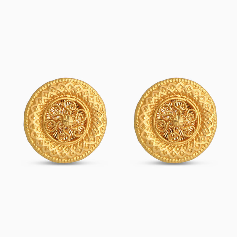 From PureJewels’ Aiyna Collection, the Mandala Coin Stud Earrings capture the timeless beauty of symmetry and symbolism. Crafted in radiant 22ct gold, each 14mm stud is meticulously detailed with a central motif framed by concentric layers of textured patterns—evoking the meditative geometry of a mandala.