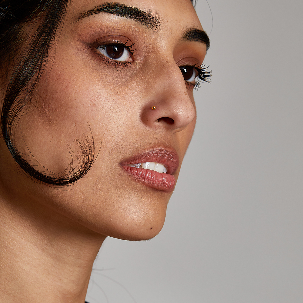 18 ayar altından üretilmiştir. burun pimi günlük kullanım için hafif, güvenli ve rahat olacak şekilde tasarlanmıştır. İnce 0,6 mm sap ve yaklaşık 6 mm uzunluk yerine düzgün bir şekilde otururken, 0,9 mm tüp kalınlığı hacim olmadan güven verici bir his sunar. Her bir parça, altının saflığını ve kalitesini belgelemek için İngiltere'de damgalanmıştır.