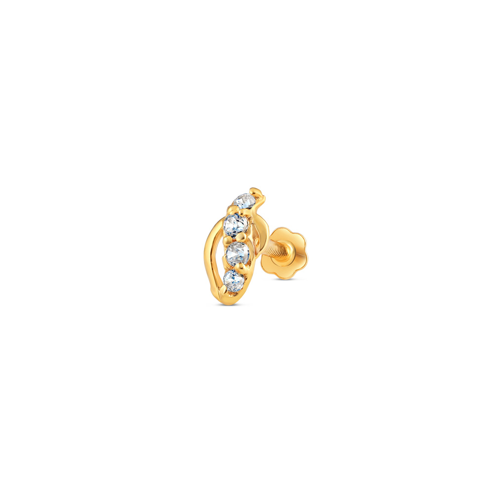 18 Ayar Altın | Sarı Altın CZ Taşlı Burun İğnesi Saplama | 6,5 mm Kalınlık