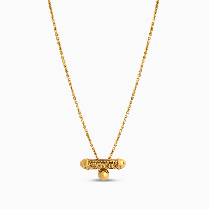 Yüksek saflıkta üretilmiştir 22 ayar altın ve orijinallik damgası taşıyan bu kolye, kaliteye olan bağlılığımızın bir göstergesidir. Kolye ucunun akıcılığından zarif zincirine kadar her ayrıntı, kalıcı konfor ve lüks bir kullanım deneyimi sunmak için düşünülmüştür.
