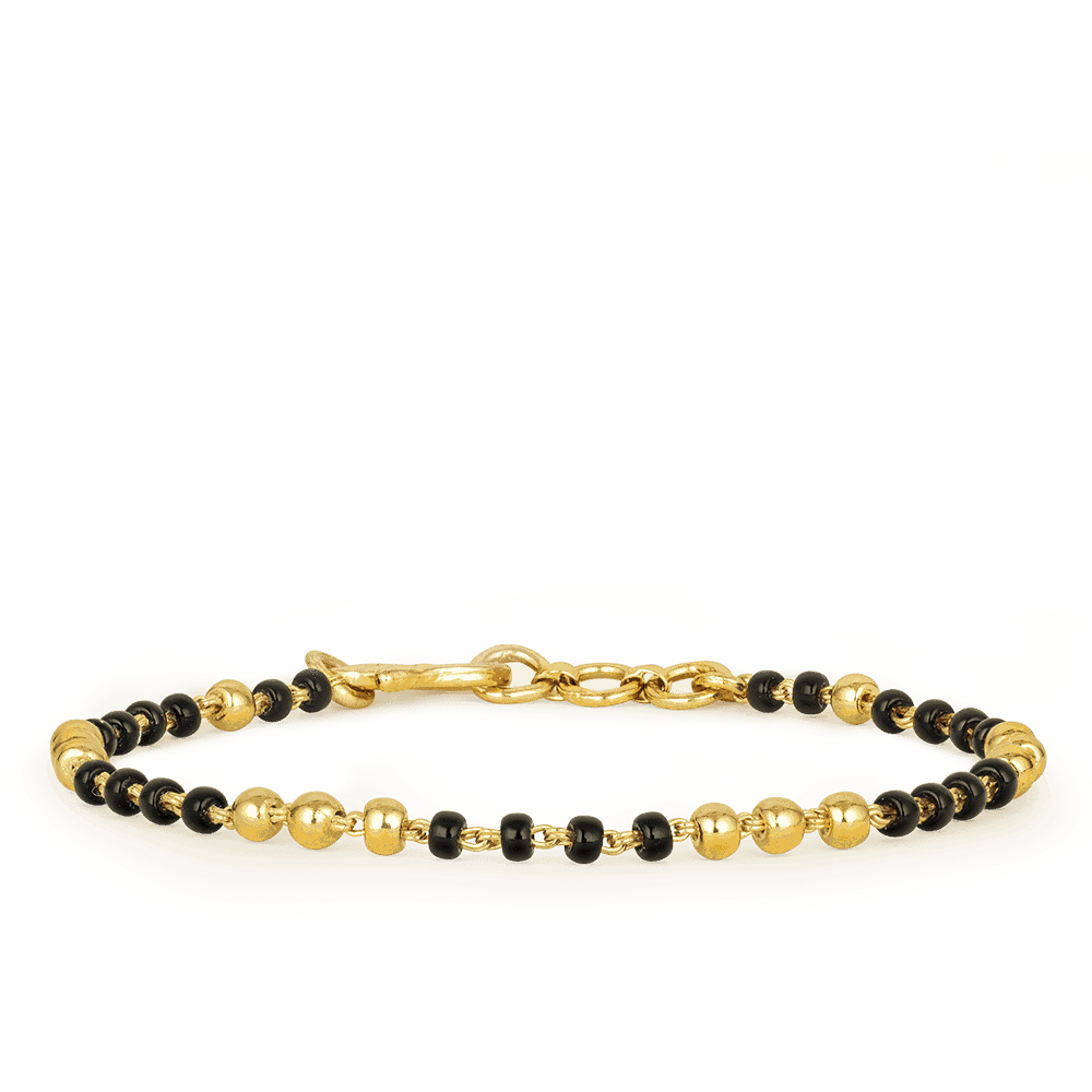 Bu 22ct Altın Bebek Bilezik Siyah Boncuk Detaylı, gelenek ile zarif zarafeti bir araya getirmek için özenle tasarlanmıştır. Tasarım, cilalı altın boncukların ince siyah boncuk detaylarla birbirine bağlandığı, genellikle koruma ve esenlikle ilişkilendirilen dengeli ve anlamlı bir desen oluşturmaktadır.