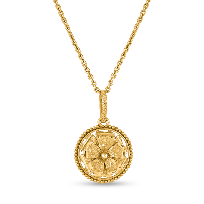 Zamansız zarafetin özünü kucaklayın 22ct Altın Çiçekli KolyeMücevher koleksiyonunuza doğadan ilham alan bir güzellik katan büyüleyici bir parça. Saf 22 ayar altından ustalıkla üretilen bu 15 mm'lik kolye ucu, büyümeyi, yenilenmeyi ve doğal zarafeti simgeleyen narin bir çiçek tasarımına sahiptir.