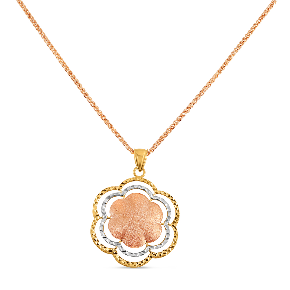 - 22 Ayar Altın Süslü Çiçek Kolye | Pembe Altın