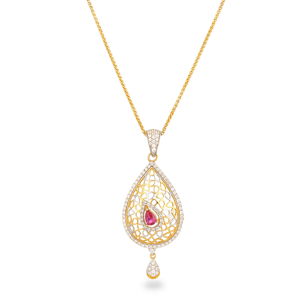 22 ayar altın armut kolye ucu, jali işi, CZ detaylar ve merkez renkli taş.