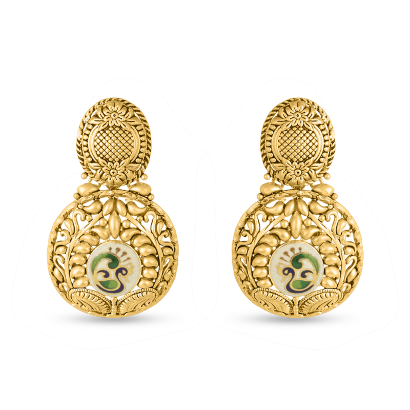 Bu küpeler, kıyafetinizi tamamlayacak tek bir parça istediğinizde başvuracağınız çift olarak tasarlanmıştır. Minedeki tonları ortaya çıkarmak için saree, anarkali veya zarif bir elbise ile stilize edin veya rengin odak noktası olmasına izin vermek için nötr terzilikle giyin. Etkileyici ama gösterişli bir son dokunuş istediğiniz düğünler, festivaller ve akşam toplantıları için çok uygundur.