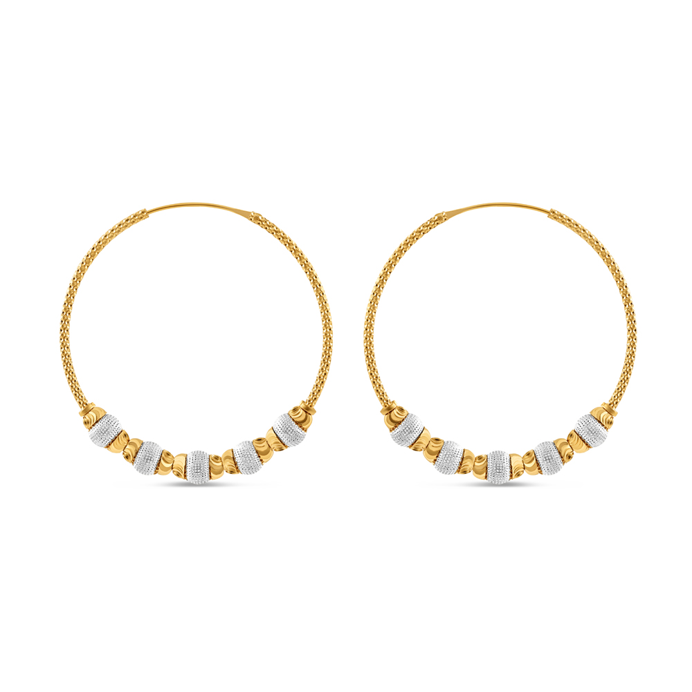 Rodyum Kaplama Boncuklu 22 Ayar Altın Halka Bali