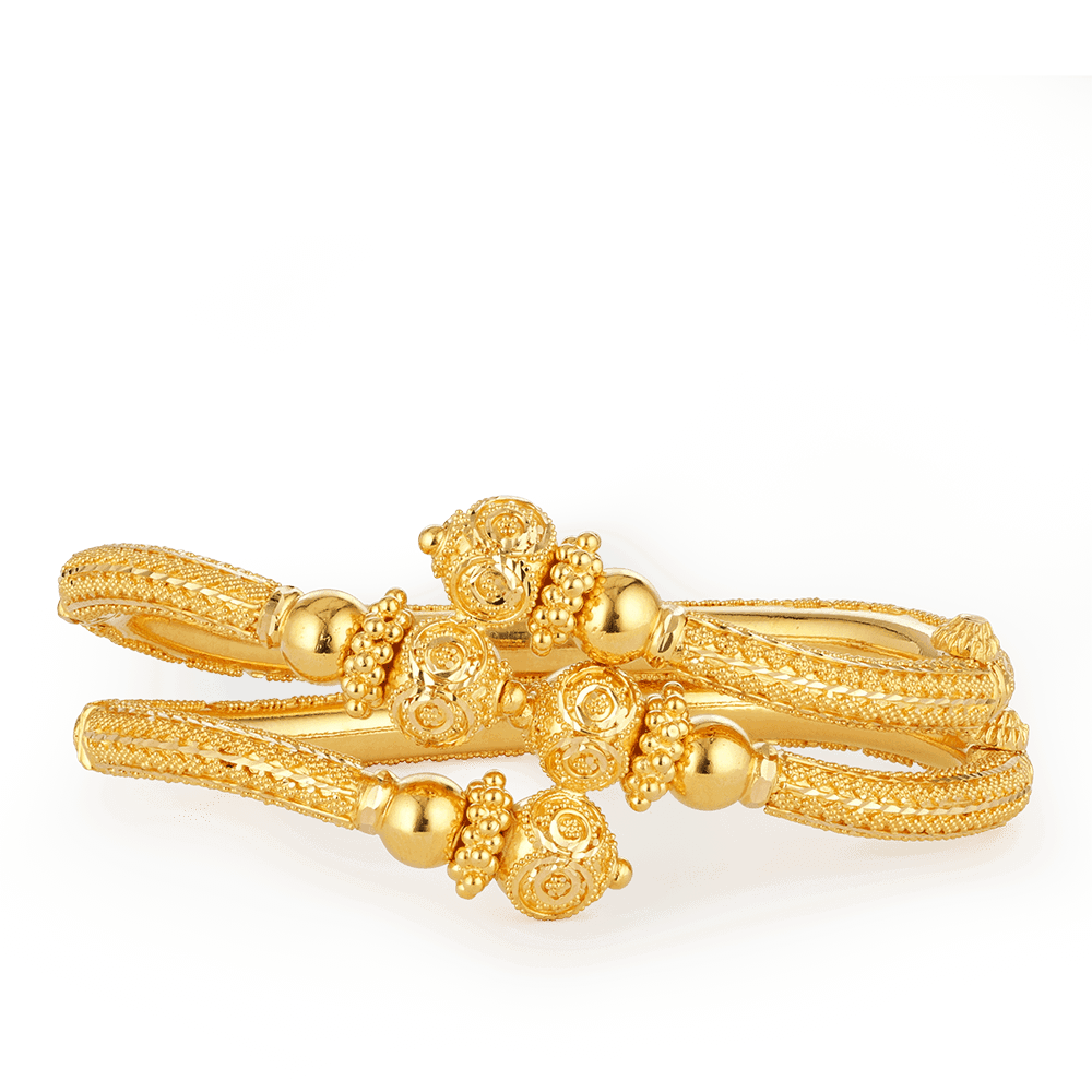 Jali koleksiyonumuzdan parlak, cesur altın işçiliği: bunlar 22ct altın bilezikler geçmişe selam göndererek karmaşık bir şekilde detaylandırılmıştır. Eski Bollywood'un romantizminden ve ışıltısından esinlenen bu çift, kendine güvenen kadınlar için mükemmel olan zamansız bir çekiciliğe sahiptir. Som 22 ayar altın ve 39,8 g ağırlığıyla oldukça ciddi bir çift. Cesur ve güzel hissetmek istediğinizde bunları alın.... ya da sansasyonel Altın Jali Telkari Kolye ile koordine ederek milyon dolarlık bir görünüm oluşturun.