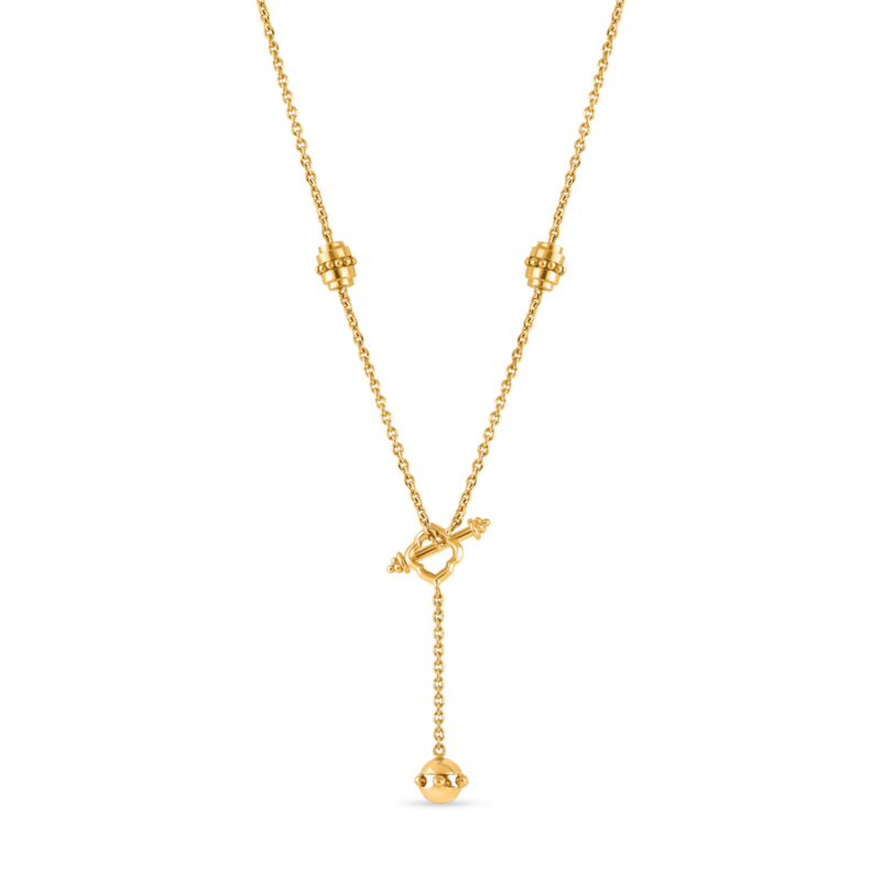 Saf malzemeden üretilmiştir 22ct altın, bu kolye otantikliği yansıtıyor zanaatkarlık. Tasarımın merkezinde yer alan granüle ses bilyesi, bilyeyi sertleştiren benzersiz bir teknik kullanılarak dövülmüştür. alaşımyumuşak, yankılanan bir ses yaratır. Her ayrıntısı hassasiyetle işlenmiş olup, dayanıklılığı tüm cilt tonlarını tamamlayan sıcak, davetkar bir altın rengi ile birleştirir.