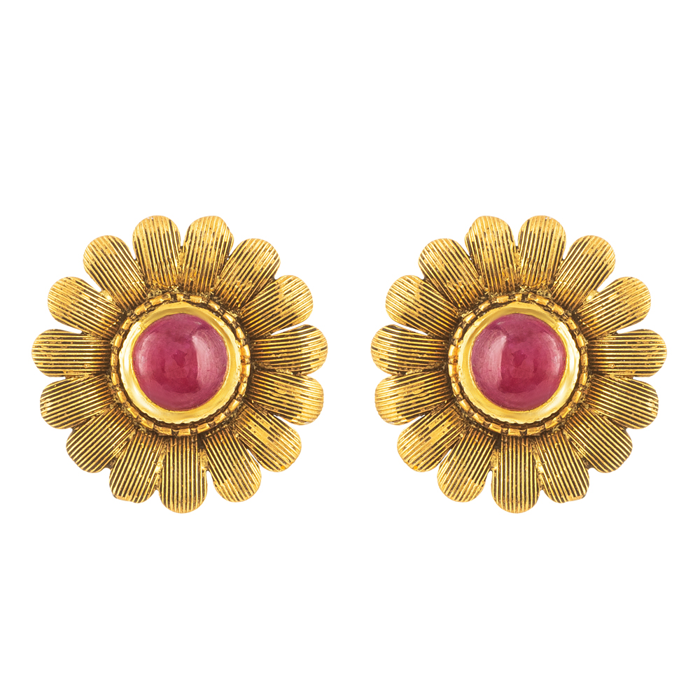 - Yakutlu 22 Ayar Altın Saplama Küpe