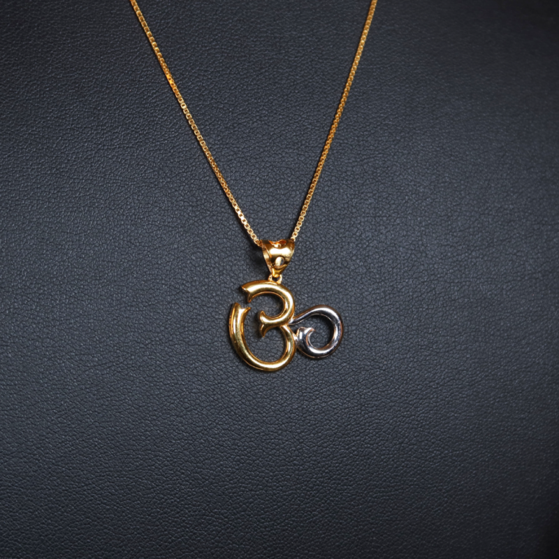 Rodyum Kaplamalı 22 Ayar Altın Om Kolye