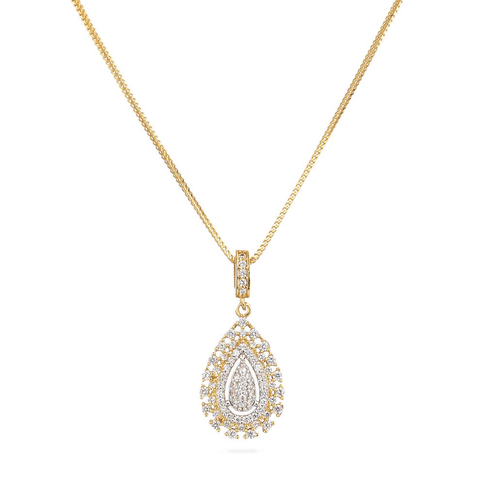 Şıklığınızla ışıldayın 22ct Altın Armut Şeklinde CZ Kolye — klasik güzelliğin ve modern parlaklığın zarif bir kutlaması. Bu özenle işlenmiş kolye, her açıdan ışığı yakalamak için katmanlı sıralar halinde düzenlenmiş, yüksek parlaklıkta kübik zirkon taşlarla süslenmiş zarif bir damla silueti sunar.