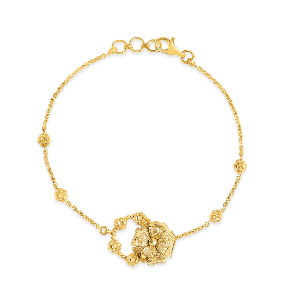 Zengin, saf 22 ayar altından el işçiliğiyle üretilen bu 7 inçlik bilezikte bir dizi güzel detaylı rozet çiçeği bulunmaktadır. Genişliği 12 mm ve yüksekliği 3,5 mm olan her bir çiçek, usta zanaatkârlarımız tarafından ince bir şekilde dökülüp parlatılarak pürüzsüz ve lüks bir yüzey elde edilmiştir. Bileklik, saflığının bir mührü olarak Londra Assay Ofisi tarafından damgalanmıştır. zanaatkarlık.