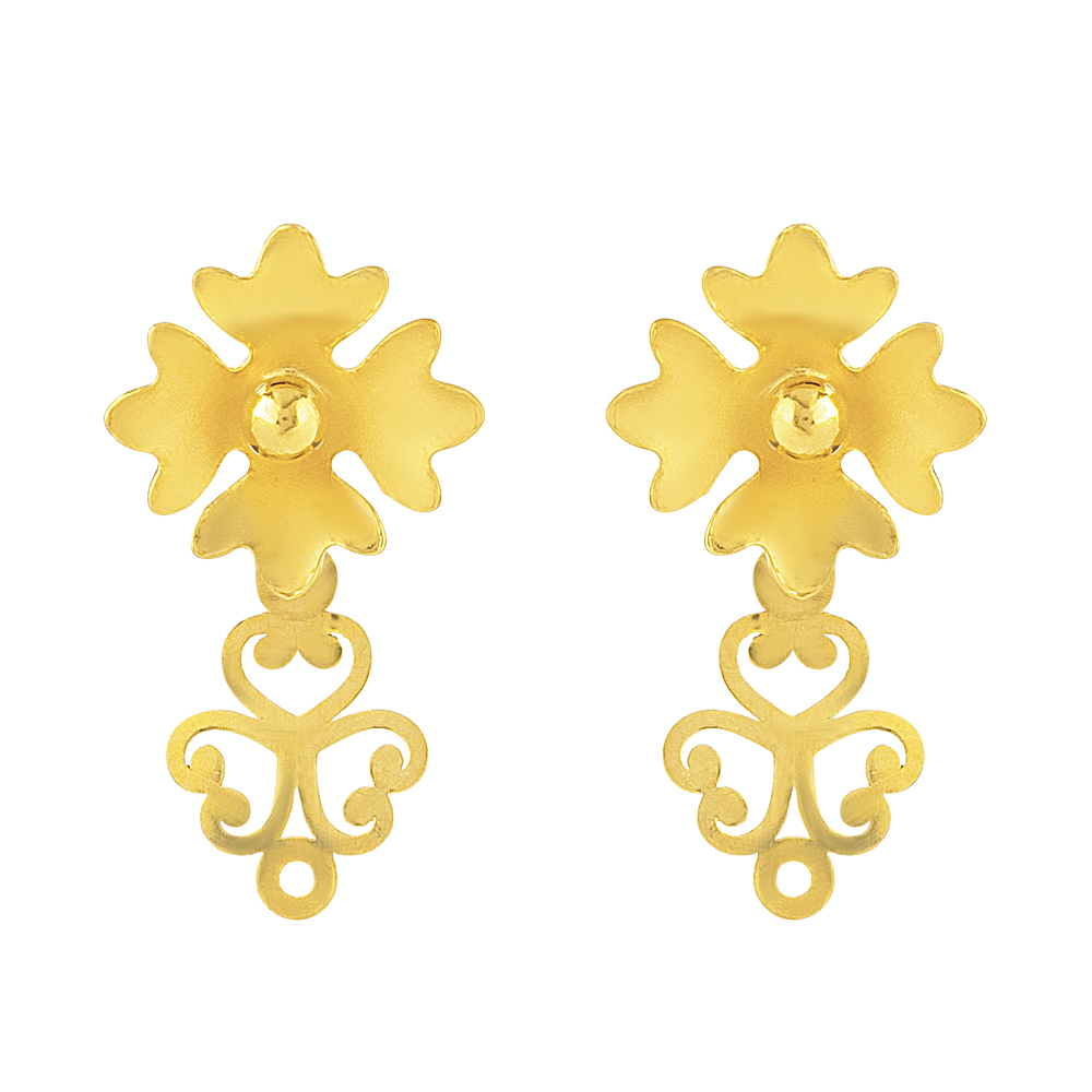 Çiçekli kulak saplamamız doğadan ve antik mimari desenlerden ilham alınarak tasarlanmıştır. Bu küpe saf 22 ayar altından el işçiliğiyle üretilmiştir. Çıtçıt, merkezinde güzel bir şekilde işlenmiş minyatür bir rawa bulunan çiçek açan bir çiçekle başlar. Çiçeği, geleneksel Hint kesme tekniği kullanılarak usta karigarlarımız tarafından elle işlenen mimari desenlerden ilham alan tekrarlayan motiflere sahip bir bileşen takip eder.