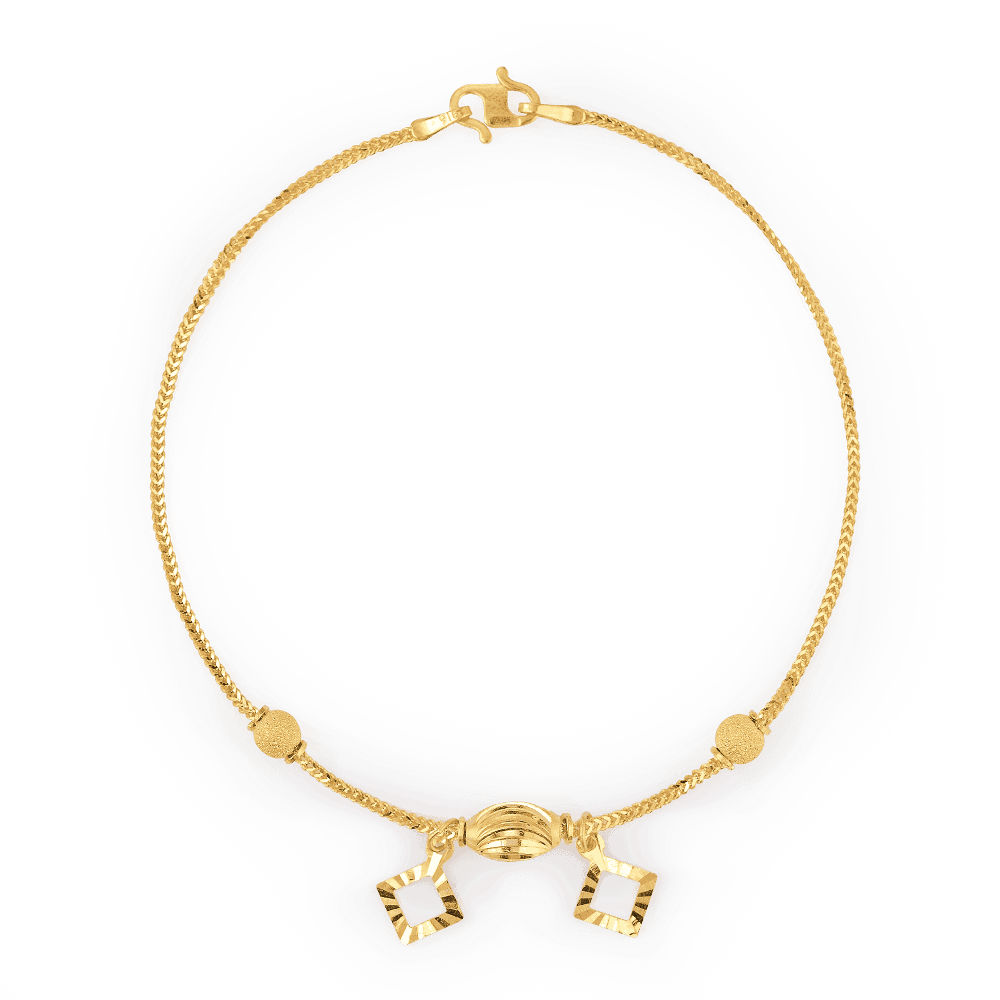Klasik altın tasarımına eğlenceli bir yaklaşım Bilezik Her hareketle sallanan iki açık kare charm ile tasarlanmıştır. Kesikli dokusu ışığı güzel bir şekilde yakalayarak ince cilalı zincire çağdaş bir hava katar. Hafif ve etkileyici tasarımıyla günlük görünümünüze neşeli bir vurgu katar.