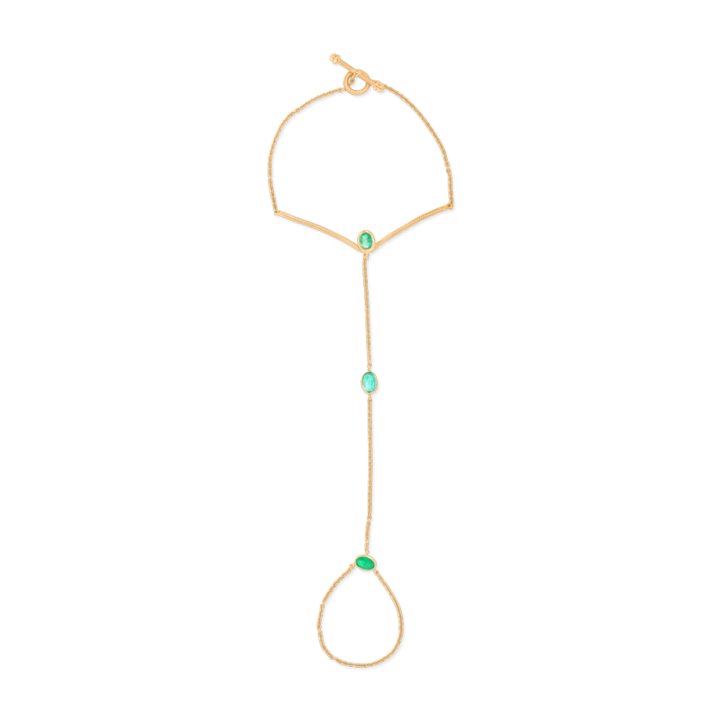 Bu ponçadaki doğal zümrütler değerli taşlardan çok daha fazlasıdır; ponçayı tanımlayan işçilik ve adanmışlığın bir kanıtıdır. Zariya Koleksiyonu. Derin yeşil tonları, Gündoğumu Altınının sıcak, altın-gül parıltısıyla çarpıcı bir kontrast oluşturarak ponkanın zenginliğini ve sofistikeliğini artırır.