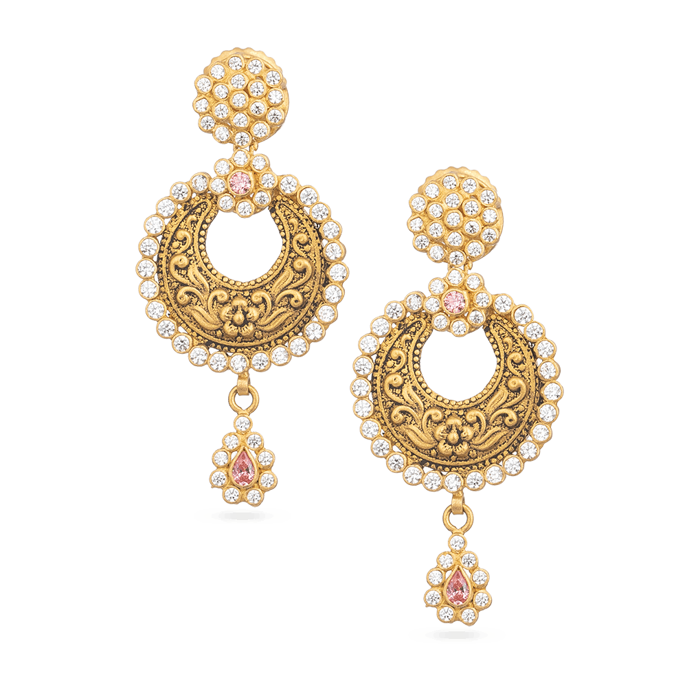 Polki Taşlarla İşlenmiş Asya Altın Küpeler